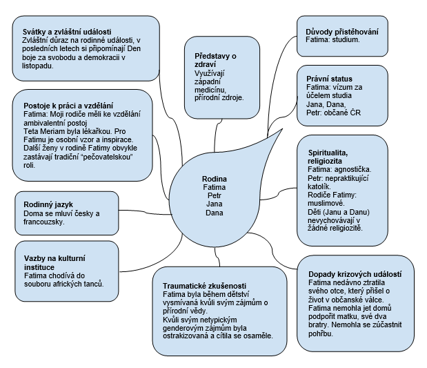 - Komunikace: Jak rodinní příslušníci komunikují mezi sebou? Jak hovoří o rozdílech, vyjadřují hněv, náklonnost, radost a smutek? Jak rozhodují?