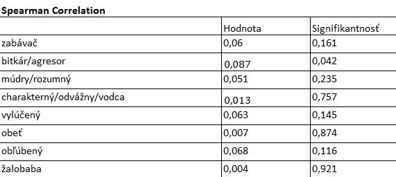 Vzájomný vzťah narastajúceho veku a citlivosti dieťaťa na jednotlivé sociálne role žiakov v školskom prostredí nebol na základe nameraných hodnôt Spearmanovho korelačného koeficientu potvrdený ani v jednom prípade, keďže všetky hodnoty sú pod hranicou 0,5, ktorá podľa Cohenovej klasifikácie predstavuje hranicu potrebnú pre zamietnutie nulovej hypotézy H0 a prijatie alternatívnej hypotézy H1.
