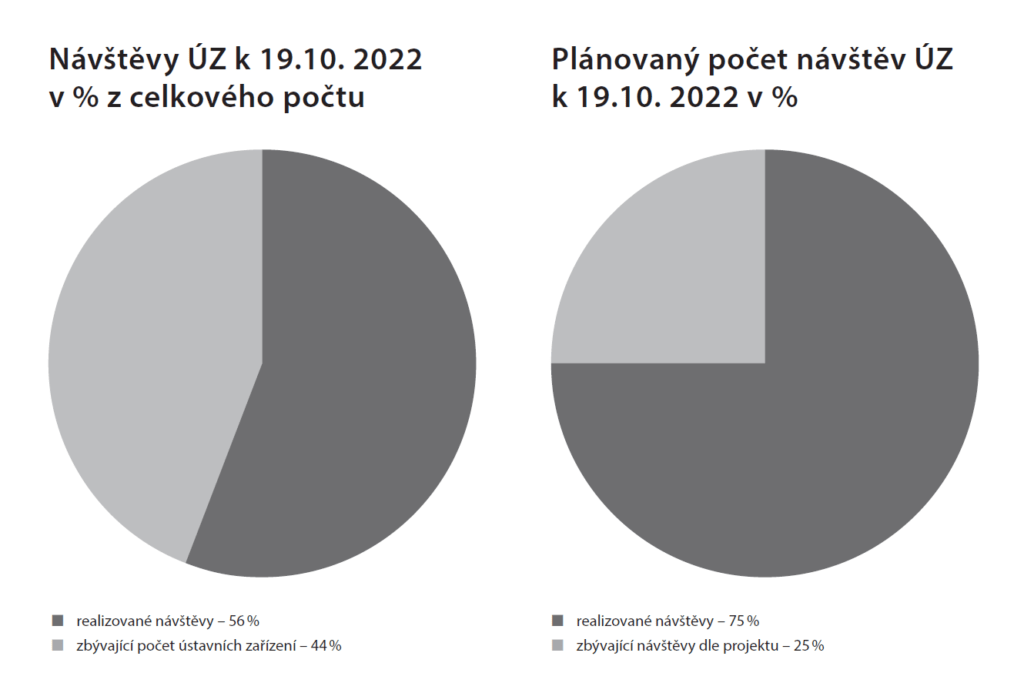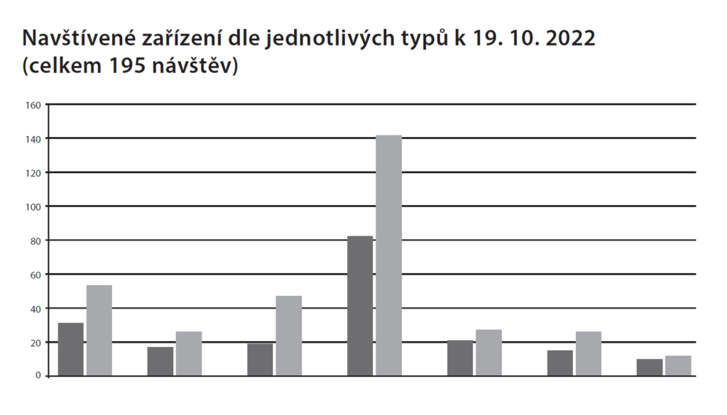 Návštěvy realizoval expertní tým pracovníků MPSV na území celé ČR a byly předem sjednávány se zřizovateli zařízení. Spolupráci se zřizovateli můžeme hodnotit jako velmi dobrou [1], většině je zřejmá potřeba změn v systému péče o ohrožené děti, kde je odebrání dítěte z rodiny a jeho umístění do ústavu stále v mnoha případech upřednostňováno před včasnou a cílenou podporou rodinám. Návštěvy probíhaly od podzimu 2019 do konce roku 2022. Tým během návštěv kombinoval studium dokumentace, zúčastněná pozorování, a také polostrukturované rozhovory s dětmi a personálem (celkem se takto podařilo uskutečnit přes 1.500 rozhovorů, z toho více než 900 rozhovorů s dětmi).
