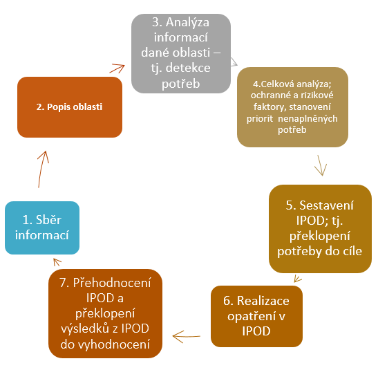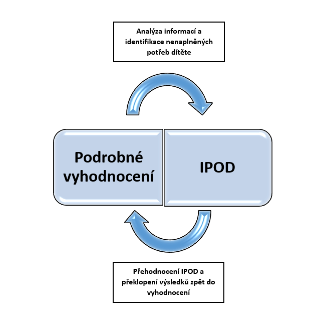 Podrobné vyhodnocení a IPOD jsou propojené nástroje, které musí být stále v souladu. Za účelem formulace cílů a opatření v IPOD je nutné informace z vyhodnocení podrobit analytické úvaze nad potřebami dítěte, rizikovými a ochrannými faktory a provést prioritizaci nenaplněných potřeb. Následně pak po přehodnocení IPOD je nutné důležité výstupy převést zpět do vyhodnocení a provést aktualizaci relevantních oblastí.