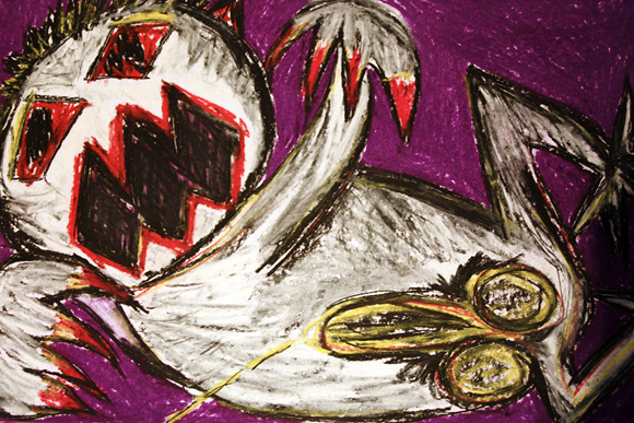 Brali jej nějak příliš vážně, on ale ani náhodou nemohl být F64, ani F43, a už vůbec F31. On/ona byl pouze občas veselým kresličem zelených psů, fialových, bílých a růžových dětí, hrdým šílencem, tvorem noci, velkohubým drzounem, zrcadlem nejtemnějších emocí těch, co jej uvěznili, pohádek králem a citlivým popletou. Foucault to ze dna várnice zřejmě nakonec odhadl, a proto vypozoroval, že „dnešní zkušenost šílenství mlčí v klidu vědění, které toho o ní ví tolik, až na ni zapomíná (Foucault: 1993: 5) – v hrdinově případě zapomíná na legraci. A tak stejný člověk, který branou bohnické léčebny prošel tam, a vykráčel druhým koncem stále stejně nemocný, nevyléčen, ale s třemi diagnózami na cestu, zase tento týden nespal a namaloval zeleného psa.
