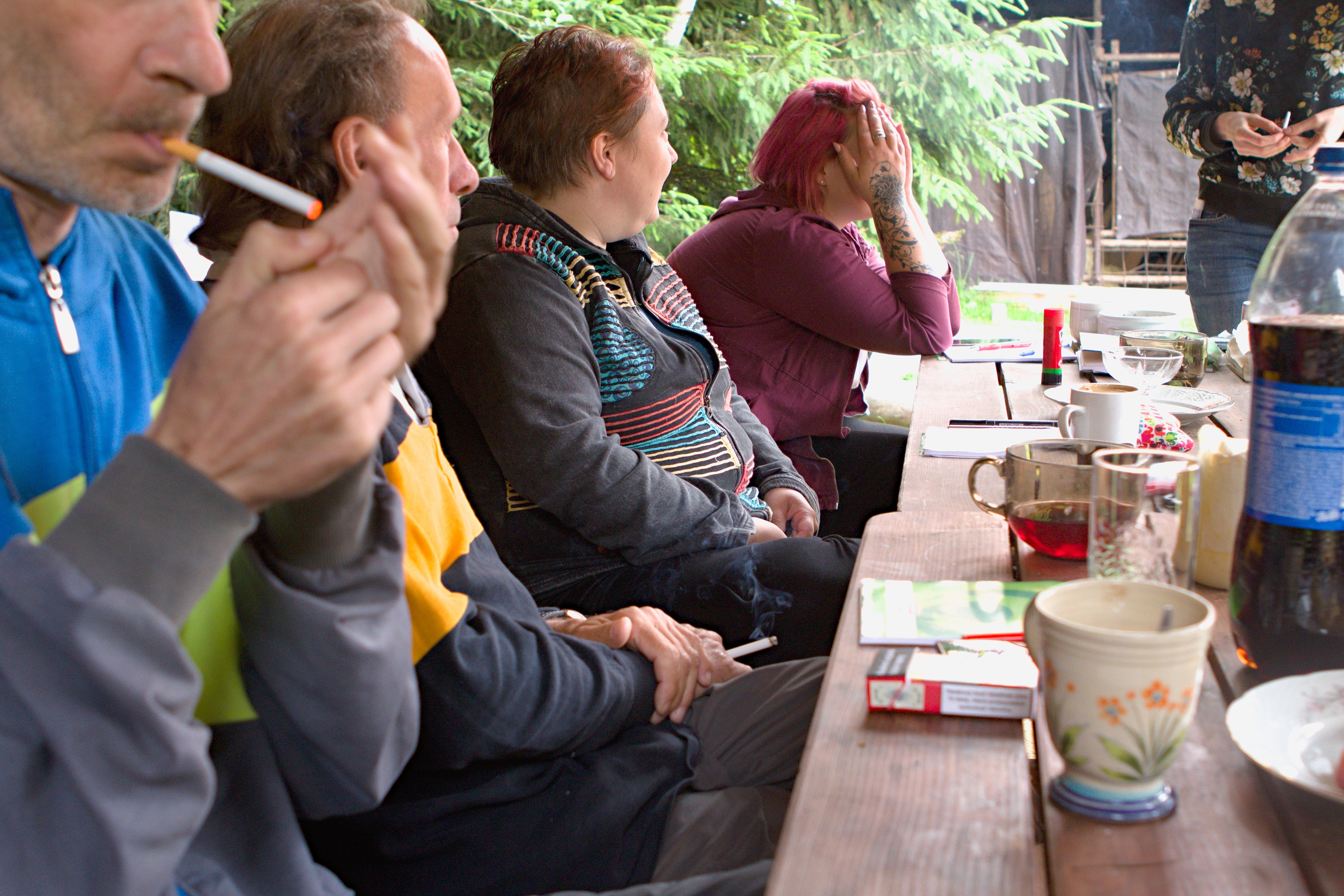 V současné době tvoří skupinu konzultantů z praxe 12 osob. Mají za sebou opakované výcviky ve storytellingu (metoda vyprávění životního příběhu) pod profesionálním vedením. Tyto výcviky umožňují konzultantům z praxe rekonstruovat jejich životní příběh, integrovat do něj zkušenost se sociálním znevýhodněním a užíváním sociálních služeb a otevřeně ji komunikovat. Výcviky také posilují skupinovou kohezi.