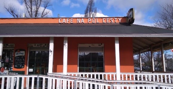 Café Na půl cesty je tréninková kavárna, která funguje již 23 let. Patří pod nestátní neziskovou organizaci Green Doors, z. ú., jejímž posláním je pomoc lidem s duševním onemocněním znovu najít sílu zapojit se do práce, podporovat jejich začlenění do komunity a přispívat k destigmatizaci duševního onemocnění. Tréninkem v Café Na půl cesty ročně projde více jak 35 klientů. Zájemcům, kteří přímo nenastoupí do tréninku, jsou vždy nabídnuty aktivity jiných služeb či organizací, které lépe odpovídají jejich aktuálním potřebám.